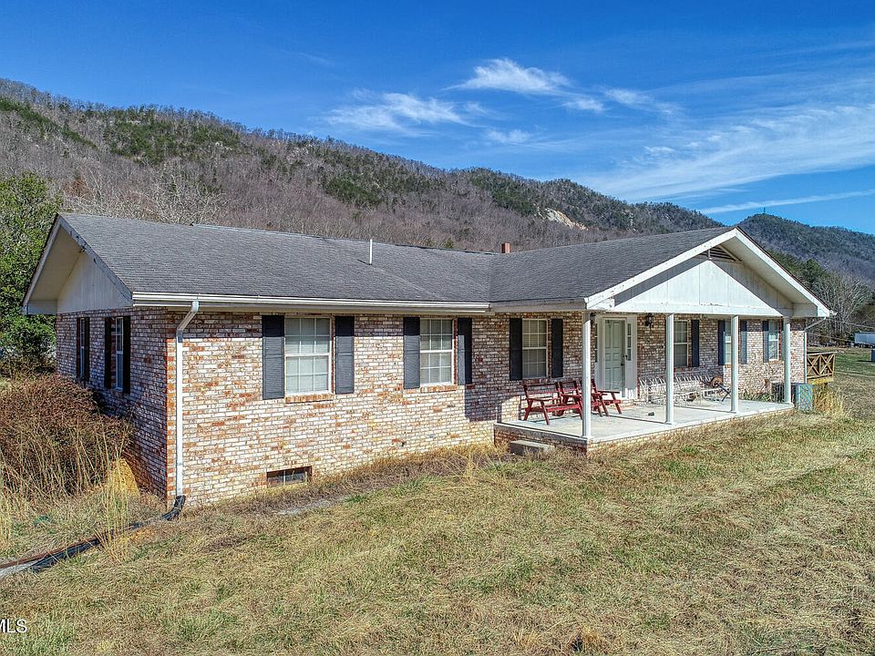 Brick ranch with a full basement was built in 1977 and has 4 bedrooms and 2 full baths. Large covered front porch and a side deck to enjoy the mountain views. The great room has the kitchen, dining area and a family room area. There is a formal living room and full size basement with wood burning stove. The 2 story cottage was built in 2010. It is open concept for the kitchen and living room and has an open loft for added space. One bedroom and a large bath with laundry. The acreage is on both sides of the road and goes up Clinch Mountain. There is a spring on the property, as well as a creek. and a barn. It is located in one on Hawkins County's beautiful valleys and is only 7.5 miles from Main Street in Historic Rogersville. Call today for an appointment to view this home. Information deemed reliable but not guaranteed. Buyer/buyer's agent to verify all information.