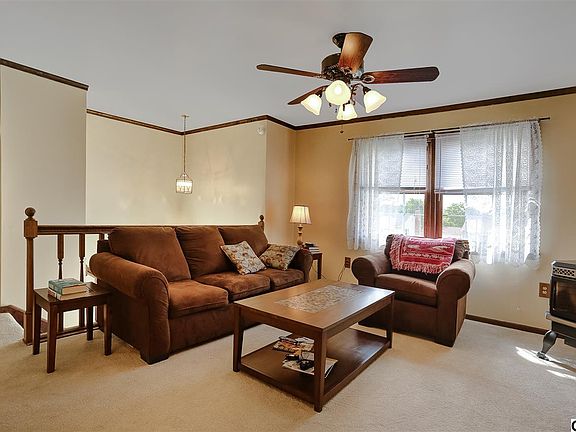 Attractive, well cared for 3 bedroom, 2.5 bath bi-level! Features newer carpet on upper level, Living Room with Pellet Stove, Dining Room and Eat-in Kitchen. The lower level has a large Family Room with wood burning fireplace and built-in cabinets, Laundry Room with half bath and access to the oversized 2-car garage with workbench. Enjoy the nicely manicured backyard with covered patio. Central Air, replacement windows, a large shed and the home is wired for ADT security.