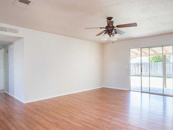 Neat and clean 3 bedroom, 2 bath home in northwest Porterville. Cute floorplan with kitchen open to dining area. Laminate flooring throughout, new carpet to be installed in one bedroom. Central heat and air, covered patio and storage shed. Garage has been nicely converted and could be a 4th bedroom or extra living area... not included in square footage of home.
