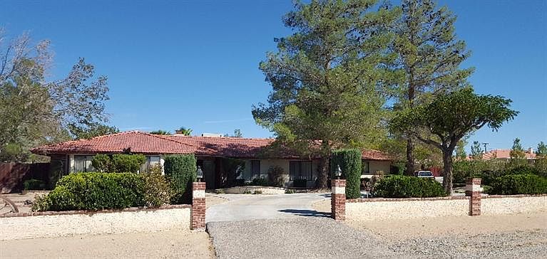 APPLE VALLEY VIEW THREE BEDROOM HOME offers formal living room and formal dining rooms with built in cabinet. A separate family room with full wall brick corner fireplace. Kitchen opens to family room and breakfast nook. All bedrooms are spacious. Ceiling fans. Separate laundry room. Oversized covered patio overlooks mature landscaping, trees, and fruit trees. A sweeping circle drive with side entry garage. Nice views of mountains. Close to hospital, shopping, and easy I-15 access.
