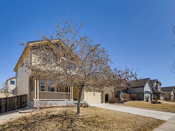 Rare find! Spacious two story home in Sterling Hills subdivision* Popular floorplan featuring large family room, open kitchen with 42 inch upgraded cabinets, slab granite, designer backsplash, and tile floors, cozy eating space with access to the oversized deck which is great for entertainment, main floor bedroom/office with french doors and the bathroom, three bedrooms upstairs with two full bathrooms(including master suite with large master bedroom with walkin closet and five piece master bathroom), finished basement with entertainment room, bar area, two bedrooms and shower* all appliances stay* updated with laminate flooring, tile, slab granite etc * large fenced yard with utility shed. Easy access to shopping, E470, I-70, and DIA. Close to schools, parks and recreation. Must see inside!