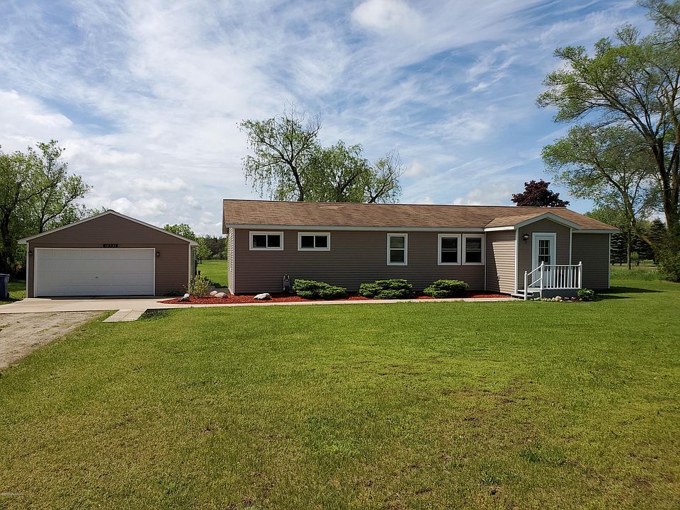 Absolutely BEAUTIFUL! This home was completely torn down to the floors (all new sub floors) and built back up around 2002. 2 x 6 Walls. Everything is like Brand New. Open Kitchen with Island Snack Bar. Large Dining area and Huge Living Room. Walk-in Pantry. 2 Bedrooms and a Flex/Office. Oversized 2 Stall Garage with a Workshop connected to the back of the Garage. Easy On/Off from US-131. Less than 10 min to the Newaygo State Park.Wear facial covering and remove shoes upon entry.