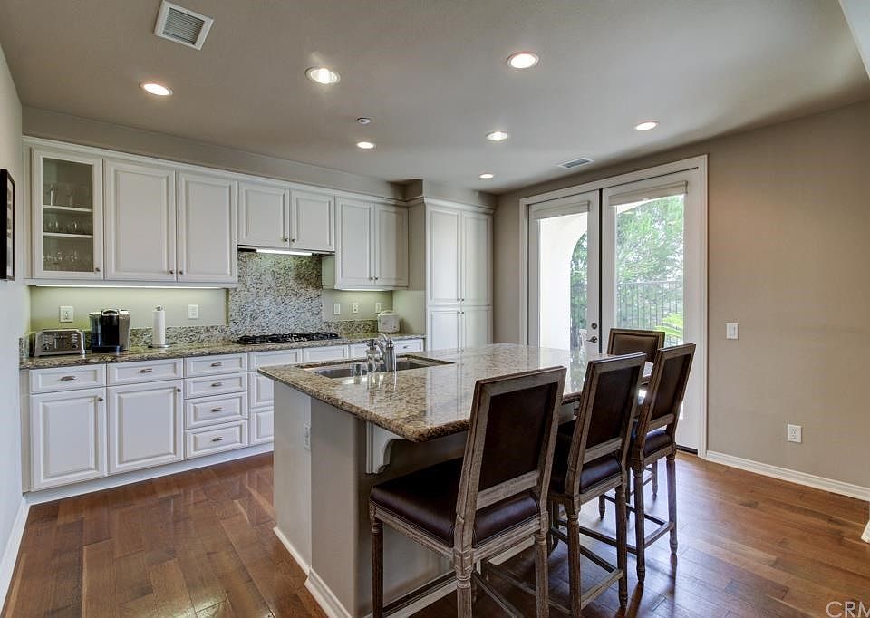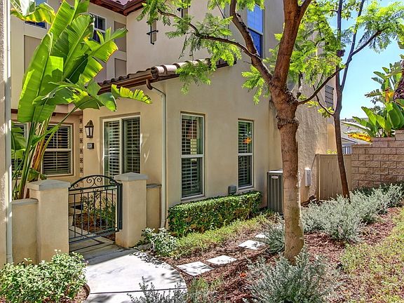 Beautiful upscale single story (no stairs) condo in the Vista Del Verde Golf Community of San Lorenzo. Enter through a private gated courtyard, this home boasts a gourmet chef's kitchen with granite slab countertops and stainless steel appliances. Distressed wood floors throughout with neutral carpet in bedrooms. Family room with fireplace, custom media center and surround sound hook ups. Dual pane windows throughout with plantation shutters. Separate dining room and spacious master bedroom - room for your larger furniture pieces. Huge master bath with dual vanities, granite countertops, oversized shower, soaking tub, upgraded flooring and large walk-in closet. Two secondary bedrooms, both with mirrored closets along with a full bath and guest bath. Separate laundry room with additional storage leads to the 2-car garage with overhead storage and a full driveway. The condo was designed to meet ADA requirements boasting wide hallways and wider door frames. Corner location with custom hardscape and room to entertain friends & family in the private backyard. Community has resort quality pool, spa, BBQ's along with clubhouse including full kitchen and TV. Minutes to Black Gold Golf Course, shopping and restaurants. Home to Yorba Linda High School.