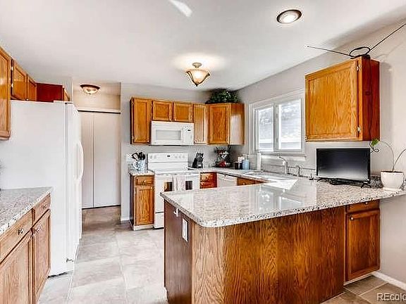 Beautifully updated walkout ranch home in Cherry Creek School District! Updated kitchen with slab granite counters, tile floors and newer appliances! Spacious eating area next to the kitchen allows for a large table. Easy access to the newly installed maintenance free deck through the sliding doors in the eating area! The large upper deck has room for your patio table and extra chairs! The great room has vaulted ceilings and a stunning wood burning fireplace with a stone surround! The spacious main floor master suite has a walk-in closet, attached master bath and access to the back deck! The fully finished walkout basement has an additional great room that you can use for your home theatre, rec room or play area. The 2 basement bedrooms share an updated bath. There is also a nice sized storage room. The lower level maintenance free deck and backyard are accessed through the basement great room. The backyard is ready for you to landscape or xeriscape, depending on your preference.