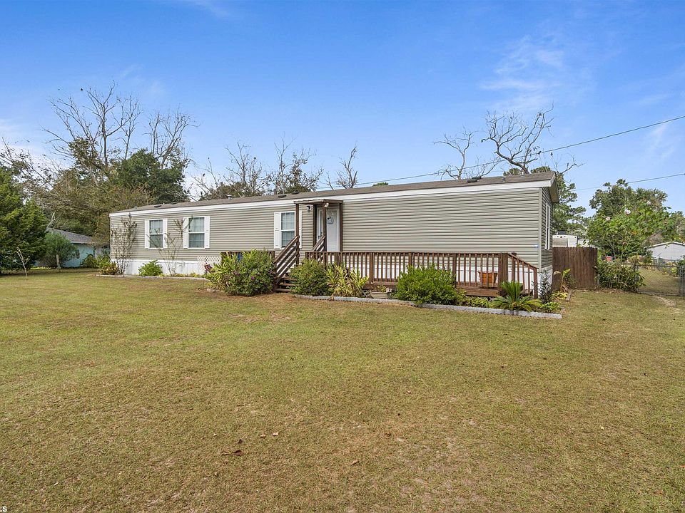 Beautiful mobile home located in Gulf Shores with NO HOA! Taylor's Riverview has a private boat launch, dock and trailer parking with immediate access to the Bon Secour River. This 1100 sq ft home sits on almost one acre and features 3 bedrooms, 2 full bath, plus 2 bonus rooms and comes partially furnished. Property also comes with 3 storage buildings : two small buildings and one is 24 x 24 large building that has a new roof. You will enjoy the nice size back yard that is full of fruit trees: Apple, Plum, Red Grape, Blueberry, Muscadine, Satsuma. Red Navel Orange, Tangerine, Grapefruit, Lemon, Fig, Peach, Banana, Kumquat, Loquat, Avocado and a Pecan tree. There is also stock gold fish pond. This property has so much to offer. It's conveniently located near restaurants, shopping and its a short drive to the Beach! Call today to schedule your private tour!