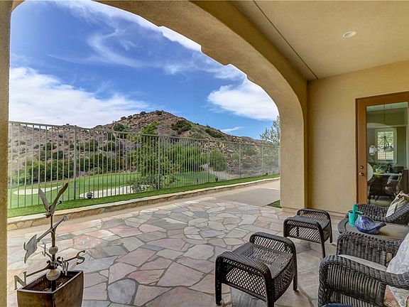 Highly sought after Plan 2 in the upscale golf course community of San Lorenzo. Open floor plan with large windows, wide hallways and high ceilings keep the home light and bright. The kitchen has rich slab granite and espresso cabinetry with glass accented doors. The kitchen is complete with stainless steel appliances, b/i refrigerator, inviting center island and a breakfast room overlooking the expansive patio and golf course view. The home also has a formal dining room. The master bedroom is located on the first floor with a luxurious upgraded bath. Custom soaking tub and walk in shower with dual sinks and a walk-in closet. Additional bedroom is generous in size and one room upstairs can be used as a third bedroom, office or guest room and boasts a private balcony. A full bath downstairs in addition to the master and an additional quarter bath for your guests. Beautiful backyard is a lovely place with covered patio, golf course and hillside views and room for relaxing or entertaining. Two car attached garage. The community has a pool, spa, barbecue area and club house. Situated in an award winning school district, Yorba Linda high school and walking distance to the new downtown Yorba Linda Center.