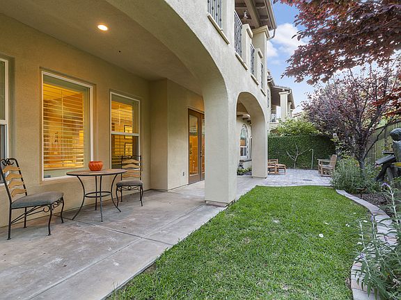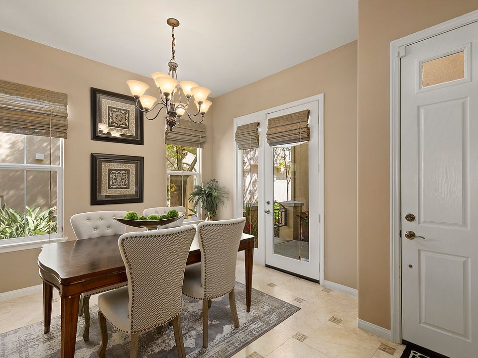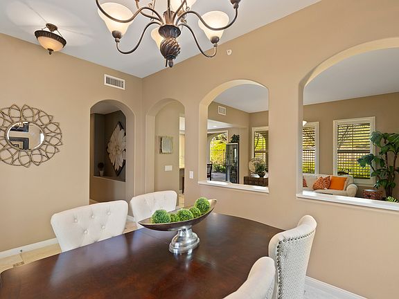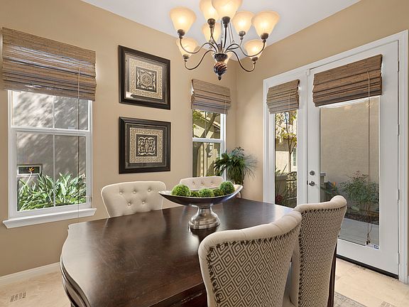 Welcome to a single level, very quiet ranch style home in the prestigious community of San Lorenzo within Vista Del Verde minutes from Black Gold Golf Club & the new Yorba Linda Town Center. Walk into a quiet & serene great room w/formal dining, living room, kitchen & continue out through French doors to the covered patio & gardens perfect for entertaining. There are no interior or exterior steps in this very quiet ranch style home w/upgraded floor plan & natural stone w/marble inserts flooring. The kitchen boasts a large center island w/sit-up bar, granite counter top & back-splash, recessed lighting & lots of storage w/soft close cabinets & drawers. The living room has white built-in media, gas starter fireplace w/mantle, large baseboards & dual pane windows w/white plantation shutters. The formal dining room has French doors to the front patio. The generous master suite has tall ceilings, new carpet, custom roll-up shades, spacious walk-in closet, large soaker tub, dual sinks, private toilet, & walk-in shower all beautifully finished along with French doors to the relaxing paved backyard & garden. Two additional bedrooms, one w/bamboo flooring & custom closet, are great for office or guests use. Additionally, there are two bathrooms, interior laundry w/direct access to the two-car garage which also has a full driveway. The San Lorenzo resort like community includes pool, spa, BBQs, & community room. All this & the highly rated Yorba Linda High School.