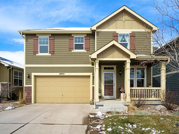 4 Bedroom / 2.5 Bath home in the popular Wildhorse Ranch subdivision in Golden at the base of North Table Mountain. Upgraded kitchen with custom shelving, stainless kitchen appliances, granite countertops, rustic painted cabinets with barn wood wrapping and walk in pantry. The open floor plan on the main level boasts hand scraped wood floors through out, living room, den/office, half bath and access to the private back yard with stamped concrete patio. The upper level includes the master bedroom suite with jetted bath tub, shower, double sinks, upgraded tile accents and walk in closet. Three bedrooms, a full bathroom, open loft area and laundry room finish out the upstairs. Views of North Table Mountain and the foothills from several upstairs bedrooms, as well as the front porch. Large crawlspace under home is ideal for extra storage. Just 100 yards from the North Table Mountain Trail Head, 2 miles to White Ranch Open Space, and 4 miles to downtown Golden with all of its amenities, restaurants, shopping and more. Golden Schools. Type 18957 W 57th Dr. into youtube for video showing of home or see virtual tour. VIDEO IS POSTED. PROFESSIONAL PICS BY MONDAY.