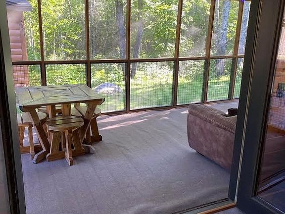 Detached garageGlass door wood stoveDeck and screen porchSeparate sauna buildingSunny kitchenLaundry room