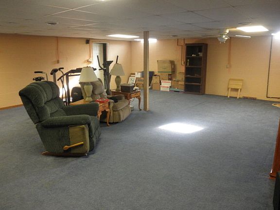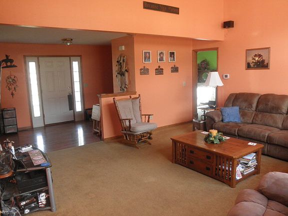 One owner custom built home with 5 acres of fenced pasture for horses or other animals. Combination structure an additional 2 car garage/barn for shelter. Home has attached 2 car garage. Yard has installed underground dog fence. Spring 2015 the kitchen was reorganized and remodeled to allow maximum use of space with solid surface counter tops and sink Additional cabinets match existing for additional storage. New laminate 'dark wood' flooring added & extended into laundry space that exits to the attached garage. Foyer opens to 16x20 great room with wall of windows facing the deck, yard, pasture and woods. The first floor master bedroom has two walk-in closets. Finished basement has half bath & 2 areas-13x24 with vinyl flooring for recreation and 30x24 family room carpeted with a gas fireplace. Lots of room for everyone!
