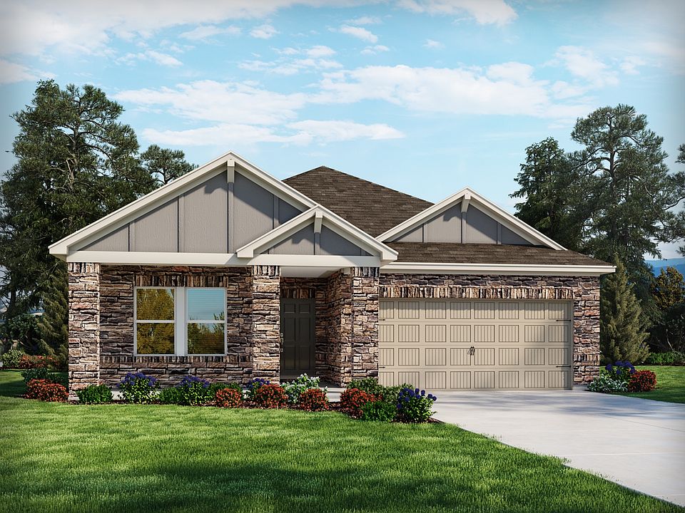 Entertain in the bright, open-concept living space. Upstairs features a Jack-and-Jill bath. The primary suite boasts a walk-in shower. Linen cabinets, smoky grey granite countertops, grey cool tone EVP flooring, and textured carpet in our Cool package.