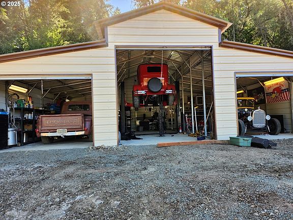 Dreaming of a self-sufficient lifestyle? This 30.1 acre haven offers a unique blend of fertile farmland and mature forest, ready for your vision. Cultivate crops, raise livestock, or simply embrace the tranquility of nature. The possibilities are as vast as the land itself. The views alone are worth the visit. Stunning panorama of the surrounding countryside and Umpqua River provide a sense of peace and tranquility that is truly unmatched. This expansive 30+ acre parcel presents a rare chance to own a diverse landscape, with water rights adding significant value for agricultural pursuits! Investment opportunity meets natural beauty! Perfect for multi-generational living, rental income or guest accommodations with these two separate dwellings. Second residence is 1200 square feet with two bedrooms and two bathrooms. Shop building was built in two thousand twenty three and comes with a 10,000 pound two post vehicle lift. Buyers to conduct their own due diligence regarding all aspects.