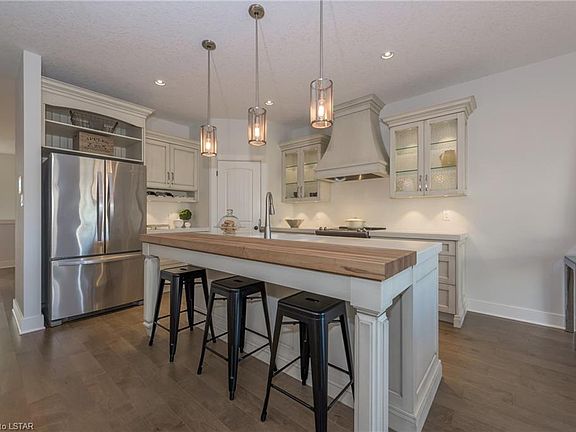 This gracious 2 bedroom ranch is not only beautiful, it's the first "net zero" house built in London! Designed to produce as much energy as it uses through innovative energy efficient features. Rainwater harvesting services the irrigation system and toilets. Solar shingles. Incredible engineered hardwood floors that create an indoor air quality equal to that of 2 1/2 living trees. You will love the attention that has been put into creating this eco-friendly home. Not only is it environmentally conscious, the curb appeal and interior showcase beautiful finishes + thoughtful design, with newly finished full fencing (2020)! Bright clean tones throughout. Open concept living combines the gourmet kitchen with a stunning contrast island w/ butcher block breakfast bar & inviting family room w/ fireplace. Separate Dining room w/ coffered ceiling. Spacious master suite w/trey ceiling detail. The perfect home for the planetary conscious and the modern design enthusiast - Welcome home!
