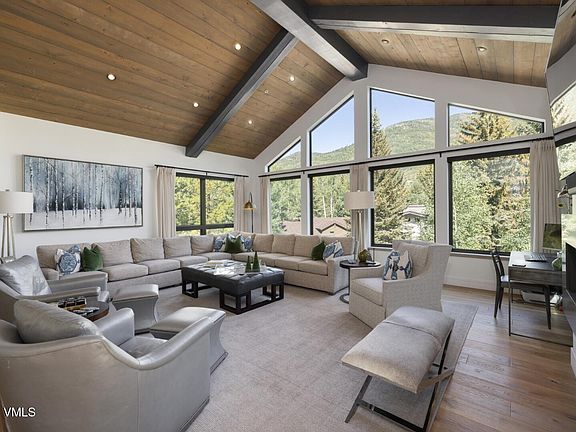 Nestled in West Vail, this stunning 5-bed, 6-bath single family home blends traditional mountain charm with warm, contemporary design. Completed in 2014, the residence offers spacious living spaces and an open floor plan, making it ideal for hosting family and friends in comfort and style. The gourmet kitchen is a dream, featuring high-end appliances, wine cooler, pantry, and a spacious island perfect for entertaining. The adjacent dining area and living room boast vaulted ceilings and a wall of windows that flood the home with natural light and serene mountain views. The residence also offers a secondary family room, and bedrooms with their own en-suite bathrooms. Conveniently located near the base areas of Lionshead and Vail Village, this home offers the perfect balance of privacy and convenience. Easy access to the Town of Vail bus line makes getting around a breeze. The property also features a heated driveway, oversized two-car garage, mudroom, laundry room and an elevator for effortless living. Offered partially furnished.