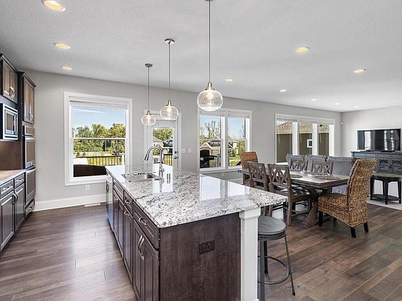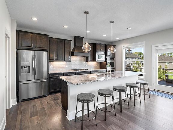 Better than new, open floor plan in prime location. Wall of windows overlooking custom deck, backyard pond ready for winter skating, large boulder wall. Kitchen and dining setup for entertaining, Center island with ample seating, double oven, upscale hood vent, pullouts, walkin pantry. Living room has gas fireplace. Spacious foyer and front den. 4 bedrooms up, each with its own bathroom! Convenient upstairs laundry. Owners suite has tub and shower and large walk-in closet. Custom Walkout Lower level with thoughtful detail that will WOW you! Family room wired for surround sound has stone gas fireplace. Wet bar has ice machine, French door fridge, quartz top island. High end LL bath with walk-in tile shower. 5th bedroom/workout room. 3car deep garage. Wide flat driveway with new BB hoop. Utility room with plenty storage. James Hardie siding. Located on a culdesac with private neighborhood park. Don’t wait on new construction when you could have this complete package today!