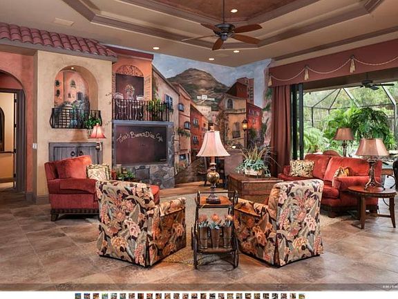 This unique home, nestled in a private preserve, is truly a masterpiece. Quality appointments and finishes are of the highest level. Venetian plaster, amazing ceiling treatments, art niches, and special interior and exterior lighting in this 4-bedroom plus den home create an atmosphere for comfortable living and entertaining. A one-of-a-kind, three-dimensional Mediterranean scene, similar to Portofino, Italy, draws your attention as you walk through the double-entry Brazilian mahogany doors. Complementing the Tuscan theme is a walk-in, climate-controlled, 500-bottle wine cellar. A beautiful, gourmet kitchen features a multitude of quality cabinetry with lighting both above and below, a large island for additional workspace, Wolf gas cooktop, and warming tray. Over 1,200 sq ft of covered outside living area includes a state-of-the-art kitchen, fireplace, bar & television, and outdoor billiard table. The lagoon-style pool, spa and waterfall, created with natural rock, offer a wonderful ambiance for entertaining. Hobby enthusiasts will appreciate a work room with cabinets, sink, storage, and a French-door entrance from the front garden. Unrivaled attention to detail; a must-see home!