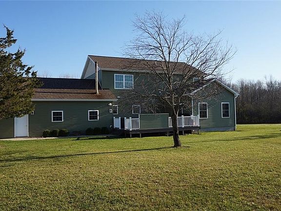 Gorgeous 10 year young home! Step into this home with large foyer, rounded archways and gleaming hardwood floors thru-out. Kitchen features island w/second oven built-in, Silestone counters, pantry cabinet + counter for seating. Kitchen is open to the living room which has vaulted wood ceilings w/log beams. Formal dining room right off kitchen. Office & 1/2 bath complete main floor. 2nd floor has master suite w/large closet, sitting area + private bath w/jetted tub, separate shower & water closet. Two additional BR's, full bath & laundry room for great convenience also located on 2nd floor. Home has a full walk-up basement w/work room & storage area + the rest could be easily finished for additional space - drywall already installed. Attached 2 car garage + additional 30x50 detached garage w/12ft ceilings providing an amazing workshop. Home has propane furnace + coal furnace for economical heating! Trex deck w/built in stone bar for low maintenance outdoor entertaining and hot tub. Additional building used as kids hang-out and a chicken coop - all this plus located on 28+ acres. Property offers great hunting and room to grow. Move right in - even the paint colors are perfect!
