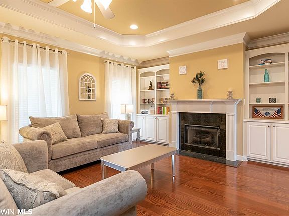 This Energy Efficient Custom Built 3 Bedroom, 2 Bath Home in Fairhope has everything you want! Located on a quiet cul-de-sac, you will love entertaining your guests in the kitchen with Granite counter tops, an island, crown moldings, recessed lighting, and solid oak cabinets. Smooth ceiling throughout the whole home. The living room has beautiful hardwood floors, tray ceiling, recessed lighting, crown moldings and built in bookcases on each side of the gas log fireplace. Split bedroom plan has an over-sized Master Bedroom with a large walk-in closet tray ceiling and recessed lighting. The en suite bathroom boasts a garden tub, separate shower and 8ft vanity with double sinks. Separate office space and large laundry room. Double garage with separate doors. The large back fenced yard is home to a 12x12 workshop. All of this on nearly ½ acre in Fairhope School Zone and No HOA fees!