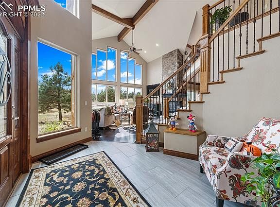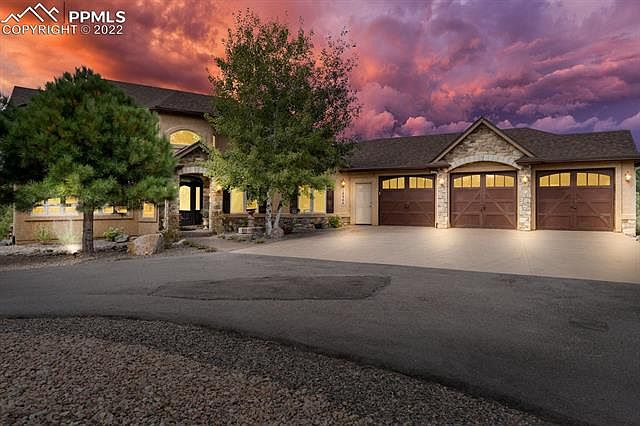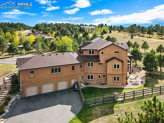 Make your dream of Colorado lifestyle living come true. Rare main level living custom home is on a beautiful 2.5 acre lot in exclusive Tall Pines Ranch. Have cars and toys? There is an over-sized 3 car garage and additional 3 car under-garage with separate paved drive. As you enter the circular driveway you will be greeted with majestic 2 story windows and entry that drench the home with natural light. Inside you will enjoy 2 expansive walls of windows in the great room that is open to the gourmet kitchen w/36" gas range and convection oven. There is an additional convection wall oven and warming drawer. The spacious main level master suite features double doors, coffered ceiling and walks out to the deck. The 5 piece master bath has a large jetted soaking tub and walk in shower.The huge master closet also connects to the large laundry room. The main level office features double french doors, built in shelves and a window seat. Formal dining room has coffered ceiling and custom lighting. Upstairs the large loft overlooks the great room and also has great views of the private lot. There is a junior suite upstairs as well as 2 additional bedrooms with a jack and jill bath. In the walk-out basement you are welcomed with a wet bar complete with new wine fridge. The large family room walks out to the patio and features a fireplace and large wall for a theater system. 3 more bedrooms finish out the basement along with a 3/4 bath right off the under-garage to clean up after you spend the day playing with your toys. There is also a large storage / utility room. Other features include 3 furnaces, one for each floor. The main and upper levels also have A/C.