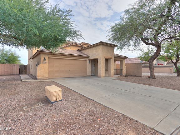 DOWNSTAIRS PRIMARY BEDROOM! GOOD EXTERIOR SPACE. PRIVATE. Looking for some privacy & space? This beautiful two-story, 2,275 sq ft home backs to the greenbelt/wash, with no neighbors behind you or on one side. Nice tile throughout with carpeted bedrooms & loft. Loft makes a great open office area or playroom/gameroom. Three upstairs bedrooms give great separation from the downstairs master bedroom. Two living spaces. One formal area (living/dining) and one family room opening to the kitchen. Large backyard with plenty of space to add a pool or create that dream space you've always wanted. Close to all things Maricopa with grocery, shopping, entertainment & dining within minutes. Check this one out!