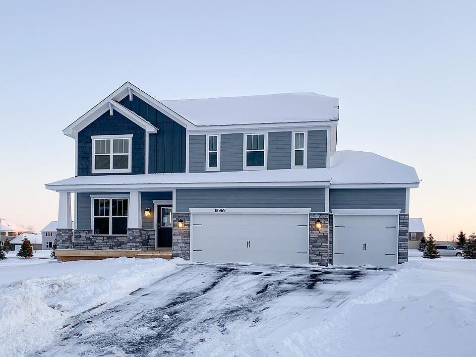 Completed new construction, Winston Plan, in Lakeville schools! This charming 2-story includes beautiful finishes, such as SS appliances, enameled maple cabinetry, tile back splash, granite & more. Open concept with 4 spacious bedrooms & laundry on the upper level for your convenience. Driveway, sod, blvd trees, in ground irrigation system & landscape included. Stunning Northern Craftsman exterior with spacious from porch. NEW smart home pkg also included. Stop by our model home located at 18912 Holland Drive for info & to tour this floor plan.