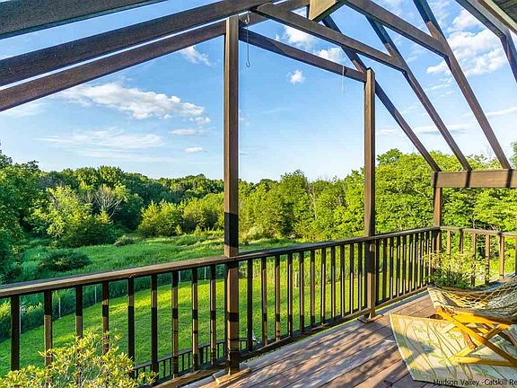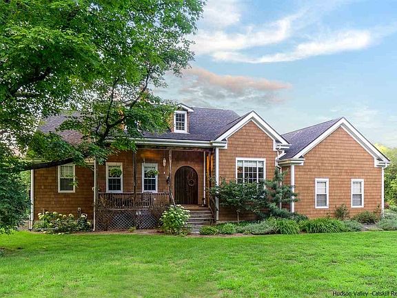 If, as they"re saying, the Hudson Valley is the new Hamptons, then this is the property that exemplifies the transition. The house is a classic shingle-style rambler with a modern floor plan that suits today's style of living and entertaining, and the soaring ceilings offer an expansiveness that mirrors the vastness of this special property. Sweeping meadow and woodland views from extensive elevated decking are framed by a series of groomed trails which lead to the rushing stream, rail trail, pond, 50-foot saline gunite lap pool and intimate areas that have been carved out for reflection and the appreciation of nature. The private master suite wing encompasses a bedroom with wood-burning fireplace, beamed ceilings, luxe bathroom with spa tub and separate shower, a gigantic closet and French doors that open to the deck. Two more bedrooms with full bath, formal dining room, library and great room with wood burning stove join the open kitchen on this level. The striking mahogany staircase leads to the magical studio level with private workspace that opens to its own deck, sitting area, half-bath and tremendous walk-in attic, which can be converted to additional living space. The great surprise is the home's lower level, which sits above grade and opens to the fenced area of the property - an ideal area for dogs and children to play safely. The double-sided fireplace faces the recreation room on one side and yoga room on the other. Comfortable media room sits alongside an art studio and additional bedroom and bathroom, infra-red sauna room, and even more finished space for workshop, crafting, gym, or additional office. If you"re in search of a home and property with generous proportions, carefully considered amenities, top-notch systems and proximity to a vast array of recreational, culinary and cultural activities, this could be it.