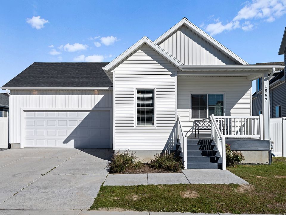 What a great opportunity to purchase this nearly new, turnkey rambler in beautiful Eagle Mountain. Nestled in a friendly neighborhood, this delightful home is ready for new owners to start making memories. The great room flows effortlessly into the kitchen, featuring crisp white cabinets, quartz countertops, and plenty of gathering space. Fresh paint throughout, blinds, full landscaping, and a fully fenced yard make this home truly move-in ready. The finished basement provides added flexibility for living and entertaining. Enjoy sunny, south-facing living with a covered front porch and no backyard neighbors - the home backs to a park, ensuring both privacy and open views. You'll love being just minutes from Cedar Valley High School, local parks, and the Overland Pump Track, a favorite spot for biking, walking, and outdoor adventure.