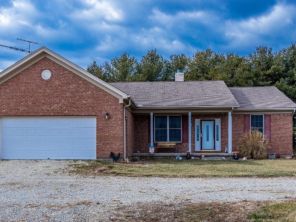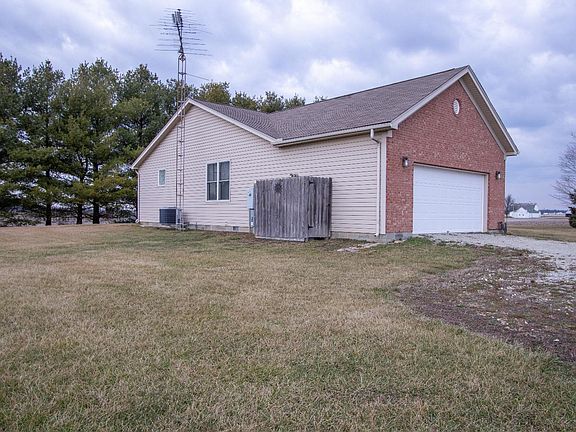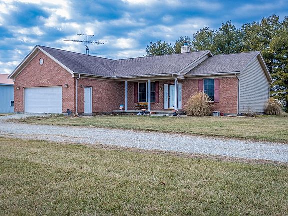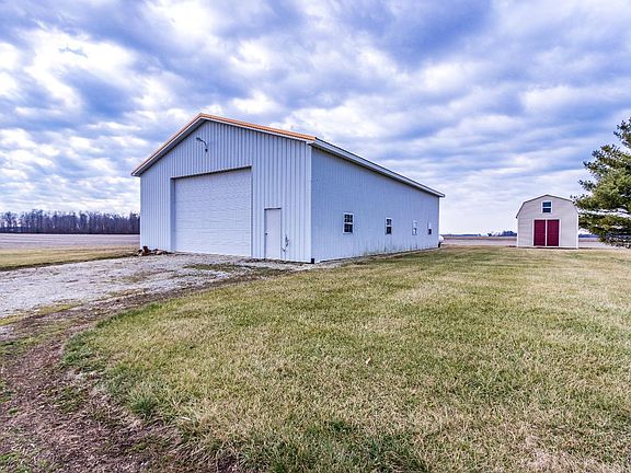 4 bedroom ranch out in the country (1,000 Ft.) from the nearest house just 7 miles from Brookville Lake and 8 miles from Oxford OH. House features eat in kitchen with walk out, oak flooring and cabinets. Living room has a fireplace and vaulted ceiling with Oak flooring. The master bedroom has trey ceiling adjacent bath with walk in shower, double vanities and a walk in closet and 3 additional bedrooms. The mud room/ Laundry Room separate the garage from the house. Also there is a 40 X 64 insulated pole barn with air compressor heat and water plumbed to shop. with an additional 12 X 12 shed.