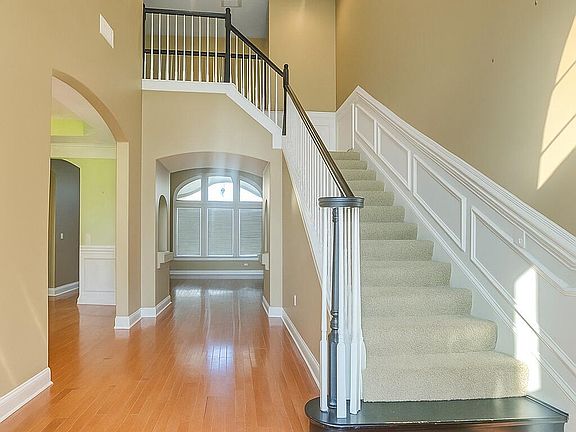 As you approach the home, you'll notice mature landscaping that frames a home rich in architectural character. Grand arched windows punctuate the front facade and invite light into the double-height entryway. The driveway sweeps toward a two-car garage featuring carriage-style accents, and a smooth walkway leads up to elegant double front doors that hint at the strong bones beneath the surface.