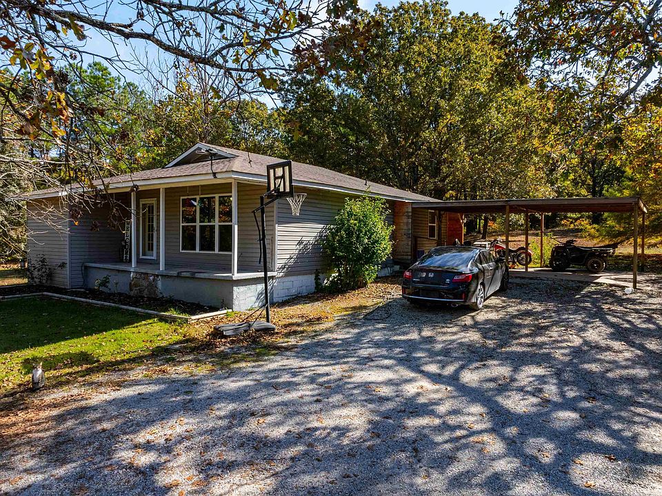 This charming home, located on Highway 230 just minutes from Strawberry, Arkansas, and only 10 minutes from Cave City, offers a cozy retreat in Sharp County. With approximately 1,477 sq. ft. of living space, this 2-bedroom, 1.5-bathroom home is move-in ready and sits on a 4.3-acre lot, providing plenty of space for farm animals or even the potential to build a second home beside the current one.The home features an attached carport and an adorable chicken coop out back, perfect for anyone looking to raise chickens.As you enter the home through the side door from the carport, you'll step into the kitchen, which opens up into a bright living room with large windows that let in plenty of natural light.Off the living room is a bonus room, accessible by stepping down a few steps, which is currently used as an office space.The primary bedroom, located off the living room, features its own private half bath and a door leading out to a peaceful patio – the perfect spot for enjoying your morning coffee or watching the sunset.The second bedroom is conveniently located just off the kitchen area.While the home is well-maintained, it could benefit from some cosmetic updates inside.