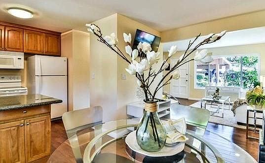 Beautiful 2bd-1.5ba 980sq ft two-story townhouse with extensive updates including kitchen, baths, flooring, windows, fresh paint, and more. Two bedrooms and full bath upstairs; kitchen, living room and half bath downstairs. Extra-large backyard with covered patio and landscaped garden area. Park directly in front of home with 2 reserved spots, 1 covered and 1 open, with plenty of street parking for visitors. Conveniently located just minutes from downtown Concord (Todos Santos Park, farmers market, restaurants), grocery stores (Safeway, Trader Joe's, Ranch 99), Concord BART and Highway 4, and less than 3 miles to N. Concord BART. Master bedroom features a large walk-in closet with built-in shelves, premium cordless wood blinds and a view of the neighboring green space. Smart home equipped with energy-efficient lights (dimmable and controlled by remote, app and/or Google Home), double-paned windows, newer full washer and dryer, and Nest learning thermostat. The downstairs TV, washer/dryer, backyard shade/privacy curtain, storage unit and Simplisafe security system included in rent (tenant to optionally pay for 24hr active monitoring, $15/month). Plenty of storage space afforded by the backyard storage closet and separate storage unit, large upstairs closet, and under-stair storage. HOA included in rent. HOA maintains exterior building, shared grounds and front garden space. Available as early as July 1, 2025, or asap thereafter (negotiable). Will hold viewings after June 15, 2025. Do not disturb tenants. Tenant must have verifiable combined income of approximately three (3) times the monthly rental rate, positive credit history, NO evictions in the past 5 years and at least 3 years of good rental history or property ownership. Tenant responsible for electricity and gas (PG&E). Tenant to pay additional $75/month that covers water, sewer, garbage, plus any balance of water bill over $50/month (has yet to happen!). Amount due monthly (rent + utilities) = $2500 + $75 = $2575. First month's rent and refundable security deposit of $2500 due at signing (total $5075). Pets - additional $250 deposit per pet (refundable). One pet preferred, but flexible. Size and breed restrictions apply (30lb). Landlord approval required. Minimum one-year lease with preference for long-term tenant. Tenant must carry renter's insurance. Non-smoking (applies to the townhouse and HOA community). Tenant responsible for maintaining backyard (HOA maintains front). Prospective tenants must apply through Zillow using tenant screening (credit & background check).