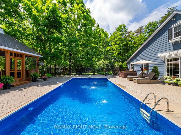 1897 Marchmont Road A Private Oasis in One of Severns Most Desirable Communities Discover the perfect blend of modern upgrades, outdoor living, and peaceful privacy in the highly sought-after Marchmont area just minutes to Orillia, scenic trails, lakes, and Horseshoe Valley, with quick access to Hwy 11.Set on a private 1-acre lot, the home greets you with a charming covered front porch complete with a two-person swing. Inside, the main floor features a spacious family room with a Napoleon gas fireplace, a formal dining room with custom lighting and a feature wall, and a brand-new chefs kitchen with granite counters, custom cabinetry, built-in appliances, and heated floors. The main-level primary suite offers a walk-in closet, double vanity, heated floors, and a spa-like ensuite retreat.Upstairs, youll find three generous bedrooms, a full 4-piece bathroom, and bonus storage. The partially finished basement expands your living space with a rec room, office area, and additional storage.Step outside to your own backyard paradise: a solar-heated inground pool with new liner (2025), new pump (2024), fountains, and a diving board. Enjoy year-round comfort in the screened-in Muskoka room, complete with a floor-to-ceiling propane fireplace and ceiling fan, or relax in the hot tub area.The freshly paved driveway includes RV parking with 110-amp hookup, plus a double car attached garage with an insulated, Wi-Fi-enabled door. Thoughtful extras include: 220-amp panel, water system with UV filter, Genie cameras, perennial gardens, fire pit, basketball hoop, 10x12 shed, tetherball, Polk outdoor speakers, and more.All of this within minutes to schools, parks, LCBO, Hewitts Market, and big-box stores.More than a home its your forever getaway. Book your showing today!