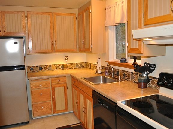 Move in ready and great features! Custom kitchen cabinets, two brand new bathrooms, newer deck, new energy efficient blinds in the living room and dining room, plus great private community beach and amenities! Three bedrooms, with an extra room for guests or study. Bonus room or family room downstairs as well. Easy maintenance with wood siding, generous front yard, easy landscaping in the back yard with a firepit. Wood stove heats the whole place. Well maintained, and bonus 1-year home warranty!