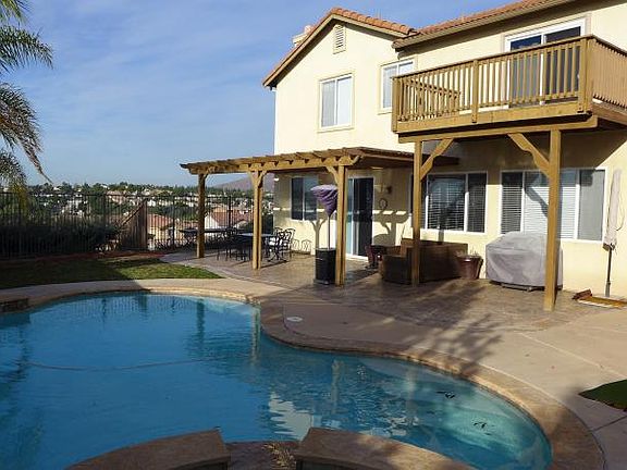 Five Bedroom home with pool and Spa available for rent in a gated community at Otay Ranch. Come see this upgraded home with wood laminate floors, one bedroom downstairs with shared full bathroom and upgraded kitchen. Full laundry room downstairs, two car garage plus huge drive way. Master bedroom has balcony with great views, separate tub and shower and entry foyer that can be used as office area. Home has AC unit and heating. One year lease required, no pets allowed, Pool service and gardener service included in rent. Available now for viewing and move in by February 15. Call today.