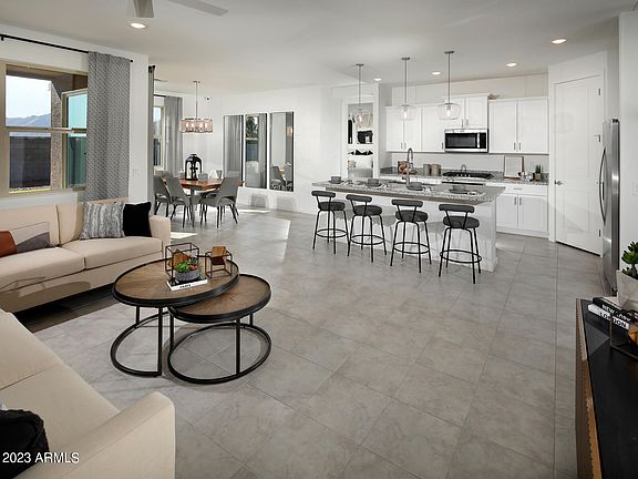Brand new, energy-efficient home available by Jan 2024! The expansive great room of the Mason is perfect for movie nights with friends. Umber cabinets with white granite countertops and backsplash. Grey tile flooring in our Cool package. Brand new model now open at Desert Moon Estates in Buckeye. This community features a playground, walking trails, tot lot, ramadas and BBQ grills. Residents will enjoy floorplans featuring expansive great rooms and flex spaces. Each energy-efficient home comes standard with features that allow your whole family to live better and breathe easier too.* Each of our homes is built with innovative, energy-efficient features designed to help you enjoy more savings, better health, real comfort and peace of mind.