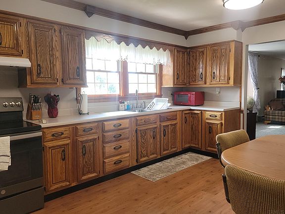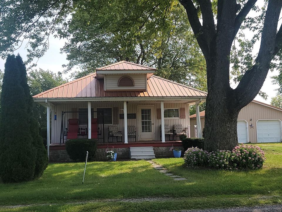 County living, come sit awhile on the covered front porch. The home has an extra large living room which is great for entertaining. The eat-in kitchen has an array of nice cabinets & counter space. The refrigerator & range remain. Large walk in closet. Nice utility room. Bathroom is updated. Metal roof is 5 years old. The home has a 36 x 28 pole barn garage with large workshop. The home has 4 parcels. Septic to the north of the home. Water heater is rented.