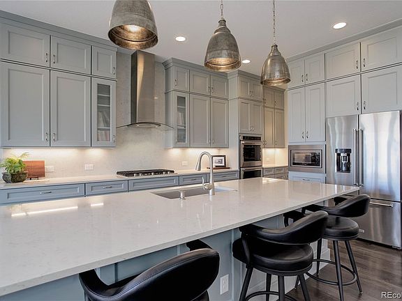 Gorgeous in every way, this is a beautifully appointed, exterior landscape maintenance free home with unparalleled upgrades. This unique neighborhood includes (with HOA) snow removal (2"or more, streets, drive and walks) mowing, yard, landscaping, and irrigation maintenance, front and back. Meticulously maintained, the main level offers hickory hardwood flooring throughout, a bright study/flex space with French doors and crown molding, a grand dining area with coffered ceilings and an atmosphere that rivals the finest of restaurants. A spectacular kitchen with quartz counters, high-end cabinets, a coffee bar with butlers pantry and stainless steel high-end appliances. The great room features cathedral ceilings, a focal point fireplace, and custom built ins. The primary bedroom is an oasis at home with tasteful, elegant decor, a five-piece bath and enormous walk-in closets with built-ins and organizers. The lower level is equally as impressive featuring a wet bar with quartz counters, high-end cabinets, a beverage cooler, dishwasher, an expansive entertainment area, large bright bedrooms with enormous closets, a second, custom crafted fireplace, a bonus room perfect for crafts/exercise area, or media room, and a beautiful full bath. Outside is open space to behold, with foothill views and wide open spaces. Amazing ambience from the covered porch up, or the stamped concrete retreat down, with custom grill and firepit areas including natural gas hookups. The 3 car garage is beautifully finished with large cabinets, and lots of storage. All of this in a home with high ceilings, upgraded flooring, high-end Hunter Douglas window coverings, crown molding, and a concrete tile roof. With a community feel, a fitness center, 2 pools, miles of trails, a community garden, parks, tennis courts, acres of open space, this neighborhood has it all. The designers spared no expense with the upgrades and finishes. This truly is a must-see, parade of homes style property.