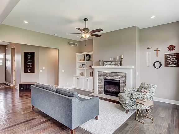 Don't miss this spectacular ranch on a daylight basement in the coveted Deer Hollow subdivision. This is a John Schmucker built home, featuring 5 bedrooms, 3.5 bathrooms and just over 4000 sq ft of endless opportunity to make the perfect home your own. This open concept home has a huge living room with a gas log fireplace, 10 ft ceilings and a lovely built-in shelving and cabinet unit. The living room boasts gorgeous flooring throughout and tons of windows, allowing for natural light. The kitchen features beautiful custom cabinetry, quartz countertops, striking backsplash and a great pantry space. There are 4 bedrooms on the main level, including the ensuite master, with a split bedroom design. The master bedroom has a tray ceiling and a walk-in closet with built-in shelving. The master bath has a huge walk-in ceramic tile shower and a double sink vanity. Head downstairs into the daylight basement and enjoy a massive rec area, a wet bar, and a 5th bedroom and full bath. This huge space downstairs gives lots of additional storage area and can serve as a great space for entertaining as well. Out back you can fall in love with an enormous deck great for grilling and sitting out watching the sunsets overlooking the pond. There is a 3 car attached garage which provides more storage opportunity. Situated in a hot new subdivision within the Leo school district, this home won't last long. Make this your new captivating oasis today!