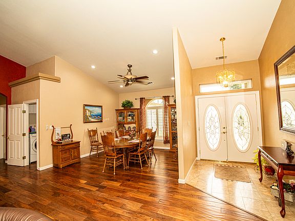 Beautiful home just across the street from the lake! Features include vaulted ceilings, beautiful granite countertops, walnut floors, RV parking w.electrical hooks up's, 3 car garage w/1 bay which could be used as a bonus room/hobby room. Great outdoor setup with huge patio, outdoor kitchen, & low maintenance landscaping. Master bathroom with double sinks, tub, tiled shower, and walk-in closet.