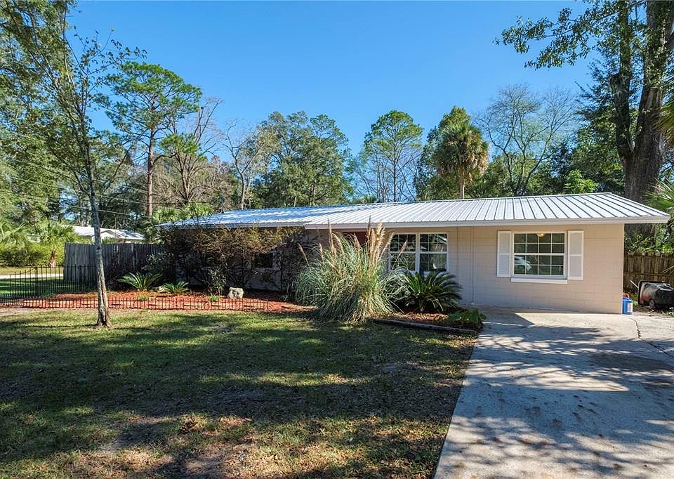 This beautiful home is back on the market! Enjoy Downtown High Springs living in this 3/2 pool home with connected Guest House 1/1 on a corner lot. Enjoy diving at the Springs, Floating down the Santa Fe River or just lounge by the Large beautiful pool on the patio or hang out in the a big new jacuzzi. This home was remodeled in 2012 including the metal roof, the Pool was resurfaced and beautiful pavers installed 3 years ago. 2023 New Water Heater, New A/C. Back yard is fully fenced and there is a nice big grass yard area as well as a Huge slab for RV parking or to use as a workspace. Only 30 minute drive to Gainesville or Lake City.