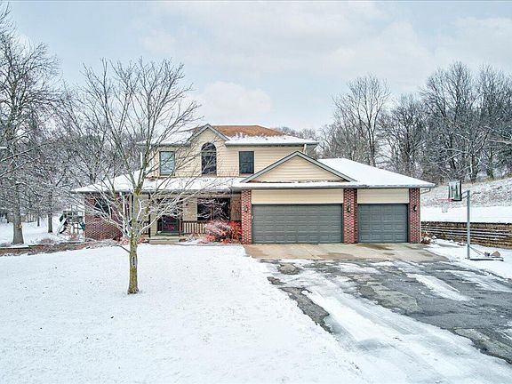 This 4 bedroom 4 bath home is on over 4 acres at the edge of town and has all the things you could want in a home. It features a main floor master bedroom, a finished walkout basement with bar, a fireplace, a wooded lot with a nice machine shed. This home is just what you have been looking for!