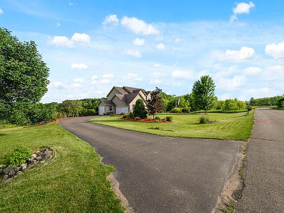 Nestled on a serene cul-de-sac, this stately two-story home offers panoramic views of the St. Croix River Valley. This classically designed home features a grand two-story foyer, elegant formal dining room, and a spacious open-concept main level with gleaming hardwood floors. The well appointed kitchen boasts stainless steel appliances, a center island, & walk-in corner pantry. Cozy up to the gas fireplace framed by arched built-ins in the living room. Upstairs, discover 3 bedrooms on one level including an expansive primary suite with dual walk-in closets and a private ensuite bath. A versatile loft space complements the upper level. The finished walkout lower level hosts additional space to enjoy with a family room, storage room, bedroom, & bathroom. Outdoor living is a delight with an expansive deck off the informal dining room, a screened-in porch with ceiling fan, and a concrete patio. With over 1.2 acres of lush green space, this home truly exudes tranquility and privacy!