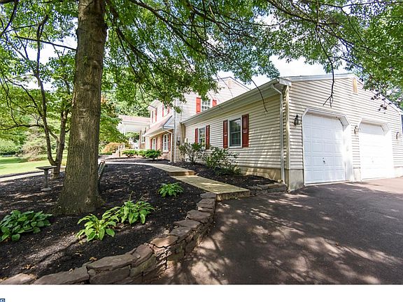 Absolutely beautiful split ranch home on almost 2 acres of impeccably manicured grounds. Located in a peaceful spot just across the street from the Perkiomen Creek and about 1/2 mile from a trail head to the Perkiomen Trail. This home has been lovingly cared for and maintained. Enter by the way of the large covered front porch with its wood planking. The spacious living room and formal dining room have real hardwood flooring, large baseboard trim and crown molding. The dining room has an Andersen sliding patio door leading to a 20' x 12' covered deck which leads to a custom brick patio and serpentine brick walkway surrounded by beautiful landscaping. The kitchen sparkles with cherry cabinets, granite counter tops and tile backsplash, deep stainless kitchen sink, built in appliances, recessed lighting, and tile flooring. Take a few steps down to the lower level where you will find a huge family room complete with cozy carpeting, two large windows, and a brick wood burning fireplace. The lower also has a large mud room area with glass door leading to the rear yard, a huge storage closet, laundry area, powder room, and access to the crawl space with great storage. From the main floor, it's just a few steps up to the upper level where you have 3 spacious bedrooms, complete with hardwood flooring, and a hall bath. The rear bedroom has a patio door leading to a private balcony. Other features include an oversized 2 car garage with garage door openers, large rear yard space for entertaining, oil hot water baseboard heat with central air and a whole house fan. If you are looking for a beautiful peaceful location, you have found it.