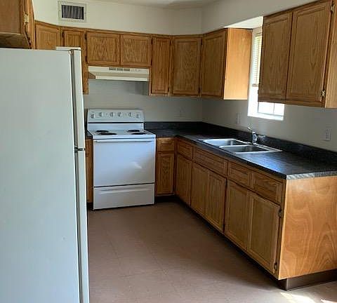 Spacious two bedroom downstairs unit with open concept dining and living room area. Includes Refrigerator and Stove, and has connections for washer & dryer. Move-In Ready! No pets allowed. All utilities to be paid for by tenant.