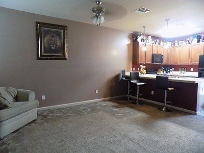 With this home you can practically relax day to day, Very LOW maintenance....spend your spare time relaxing at the park or swimming on those hot days. This home features three bedrooms 2 and a half bathrooms, 2-inch faux wood blinds, landscape front & backyards, finished 2-car garage w/opener, tank-less water heater, dual walk-in closet in the master bedroom, inside laundry, tile counters, microwave, dishwasher, trash compactor, a huge master bedroom that currently holds a California king-size bed and dual sinks in master-bath, vinyl fencing surrounds backyard with a gate access and there are two patio areas for entertaining.