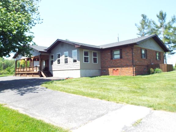 A beautiful Newly remodeled 2000 sq ft. brick home with 1.3 beautiful level acres, With mountain view. 3 bed rm, 2 bath, eat-in kit./dining rm, large sun rm,living rm, and large den/family rm. covered back porch with sun deck and fire pit. 2 car attached garage, New paint, Tile showers and tile floors in bath Rooms,New roof , new vinyl siding and soffit, New back porch with t&g wood ceilings. 1 car detached car port. More property and garage available for purchase with home and 1.3 acres.