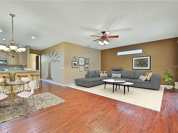 Price reduced! Motivated Seller! Take a look at this beautiful 4 bedroom/2 bath home in the desirable Lake Van Community. Split master bedroom plan with large walk-in closet. Double vanity, garden tub and separate shower. This model with large foyer opens up to an oversized living room and dining combo. The 14x12 kitchen is equipped with solid surface countertop, stainless steel appliances and lots of cabinet space. Kitchen, laundry and bathrooms are tiled. Living room and dining room has solid wood flooring with upgraded liner. The sliding glass door will lead you to a screen-in Lanai to spend your morning or evening with a cup of coffee. This community has a playground and Green area for family enjoyment. This home is conveniently located near shopping and schools and Polk Parkway. Seller will provide $5000 to be use for buyer closing cost or upgrades plus Home Warranty from Old Republic. Call and make your appointment today.