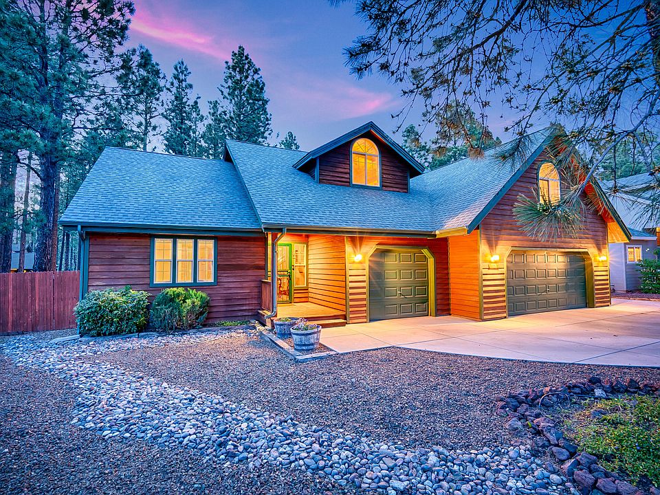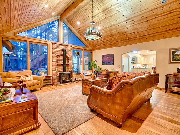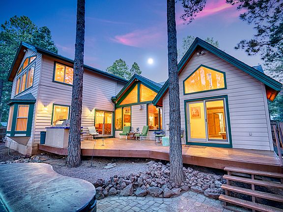 Located on one of Boulder Pointes largest lots (.40 acre). Unobstructed panoramic views with mature Ponderosa Pines. Spacious 5bd 4.5 bath with in law suite. Vaulted 16' ceilings w/tongue & groove knotty pine wood in the Great room opens to the kitchen with Italian stone countertops, upgraded maple cabinets, pre-wired for surround sound, oversized (heated) garage, large separate laundry room. office (6th room with no closet) Hydronic baseboard heating, boiler system for hot water with recirculating pump. This home includes two master bedrooms, one on the main level with sitting room,fireplace and slate bathroom. The second is located on the upper level with an impressive wall of windows facing the San Francisco Peaks and Ponderosa trees.