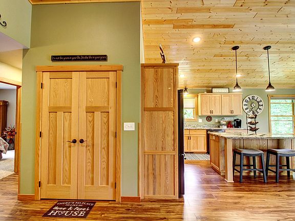 Discover lakefront serenity in this exquisite 3-bedroom, 3-bath home on 6th Crow Wing Lake. Built in 2019/2020, this meticulously landscaped property offers 2109 sq. ft. of luxury living. The main floor features 1742 sq. ft. of open concept space including a gourmet kitchen, elegant dining area, and a spacious living room with a Heat Glow fireplace. Also on the main floor is the primary ensuite, guest bedroom, additional bathroom, and convenient laundry/mud room (contains attached garage entry). Enjoy year-round comfort with energy-efficient propane boiler, heat pump, and forced air furnace. The lower level includes a finished bedroom and bath, with a large family room (9 ft. ceilings) awaiting your finishing touches & ample storage. Outside, unwind on the upper deck or lower patio, or tinker in the heated 24x28 garage or 32x32 detached shed. With easy lake access and close proximity to Park Rapids, this home is perfect for outdoor enthusiasts. Embrace lakeside living at its finest.