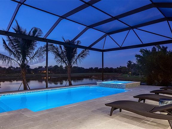 NEW CONSTRUCTION! Newly completed custom great room plan built by Shadow Wood Preserve's preferred builder, Keevan Homes, luxury builder in SW Florida for more than 25 years. This exceptional home offers designer finishes throughout the 3 bedroom + den, 3.5 baths, 3 car garage and boasts 3846 sq. ft. of total "living" area which includes the covered lanai & outdoor kitchen. Expansive lake & 9th fairway golf views. Effortless entertaining is yours with a gourmet kitchen which includes a high-end Thermador appliance package, large center island, custom cabinetry with granite/quartz countertops and separate butler's pantry. Relax and enjoy sunsets with breathtaking views from the expansive outdoor living area with custom fireplace, T&G cypress ceiling, private pool/spa and separate gazebo with summer kitchen all within a 1900 sq. ft. screen enclosure. Other features include: impact resistant windows & doors, hardwood floors throughout the home, coffered ceilings with crown molding, luxury master bath with soaking tub and spacious shower. Membership available in Shadow Wood Country Club which offers 2 clubhouses, 3 golf courses, tennis, pickleball, private beach, fitness center & spa.